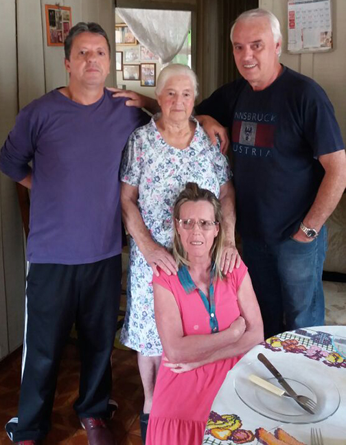 Comemorando os 93 anos de vida, aqui com os filhos Flávio, Luzia dos Santos e Luiz Ademir.